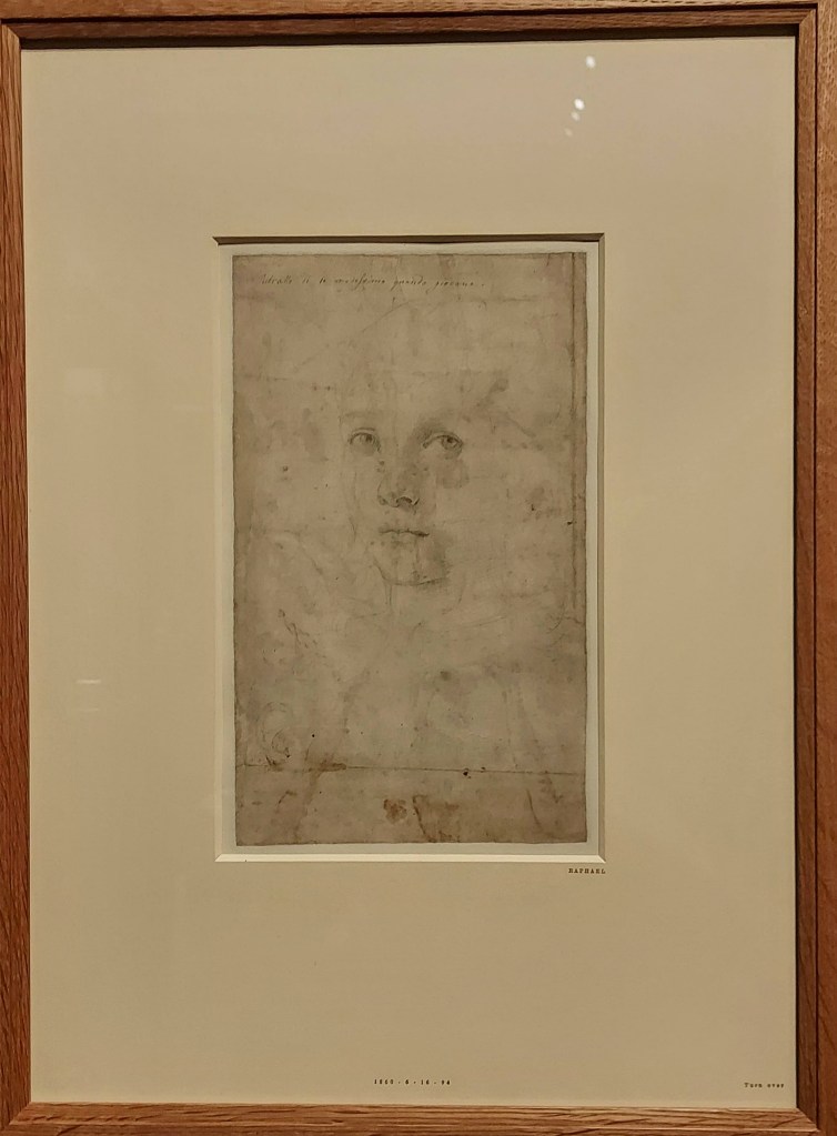 Raphael was the son of Giovanni Santi (c.1440/5-1494), a court painter to the prominent Dukes of Urbino in eastern Italy. Raphael had a brief career, dying suddenly at 37, yet within those years he excelled across a wide range of media, examples of which have been masterfully curated within this exhibition, charting his “phenomenal success and extraordinary energy”. Creations by the master’s hand have been honoured within 7 high-ceiling rooms of the main gallery, spanning his ‘Early Works’, which opens with Head of a Boy (Self Portrait?), c.1498 and highlights the early talent of Raphael around 15-16 years old, through to ‘Friends & Patrons’, which solidifies the legacy of a man determined to inspire human connection through his artwork.