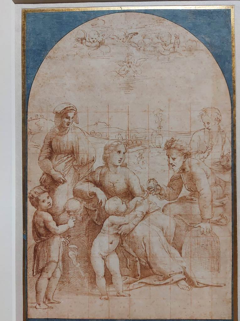 “Raphael was generous towards other artists throughout his career and provided designs for several of them to work from.” At first glance I thought this drawing was incredibly detailed for a preliminary sketch, and it was then I learnt this drawing was sent to a friend and fellow artist of Raphael, Domenico Alfani (about 1480/5-after 1553). Raphael sent this highly finished drawing from Florence to Domenico Alfani in Perugia, near central Italy, who used it to create an altarpiece in 1510, formerly in the church of Santi Simone e Giuda, Perugia. It was before creating the painting that Alfani added the grid, squaring up the drawing to transfer and enlarge the proportions. The drawing is another example of Raphael’s excellence in creating narratives between the characters, as eyes and hands, robes and limbs seem to continue their course of movement, even after the artist has finished his process.